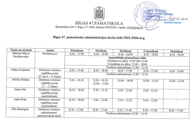 | Elita Brafogele | direktora vietniece saimnieciski administratīvajā darbā | [email protected] |